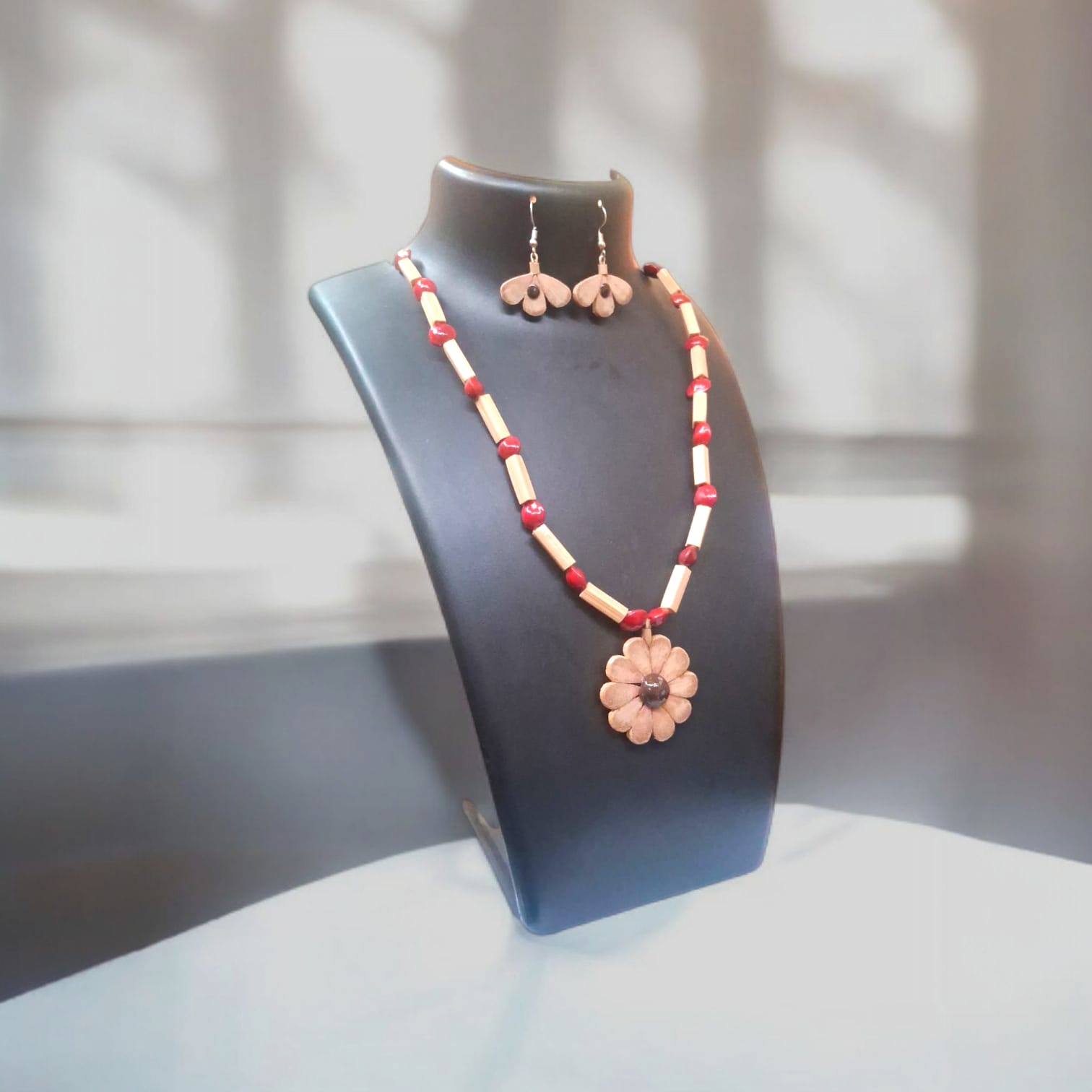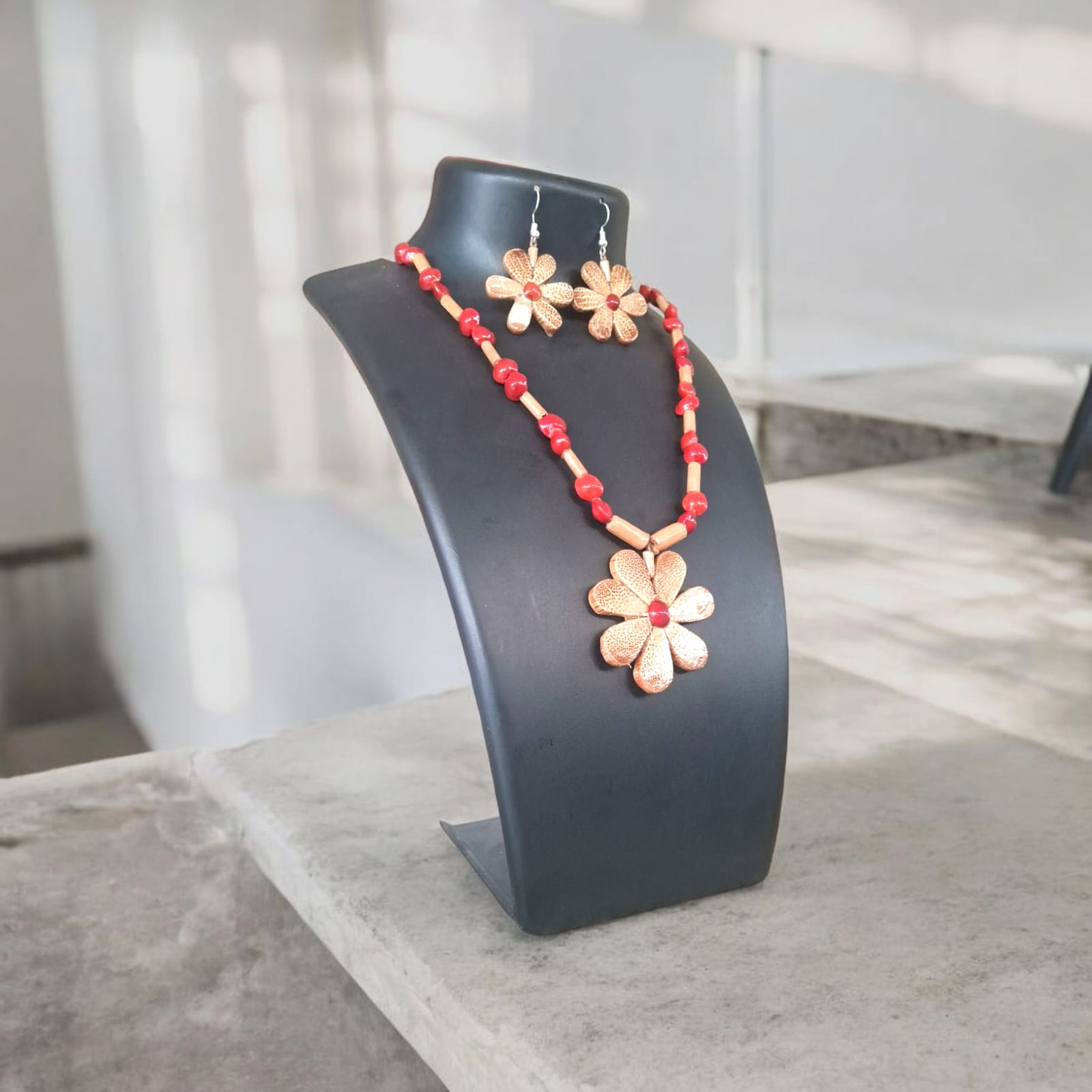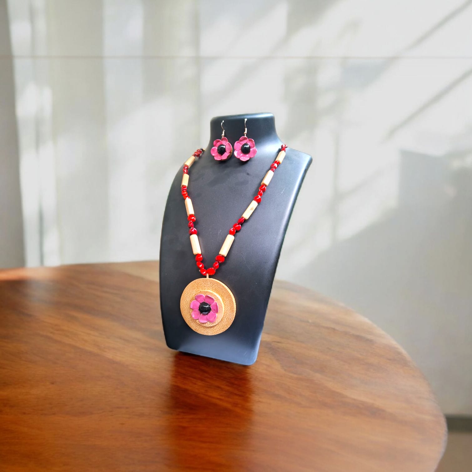 Assamese Crimson Bloom Bamboo Jewellery Set