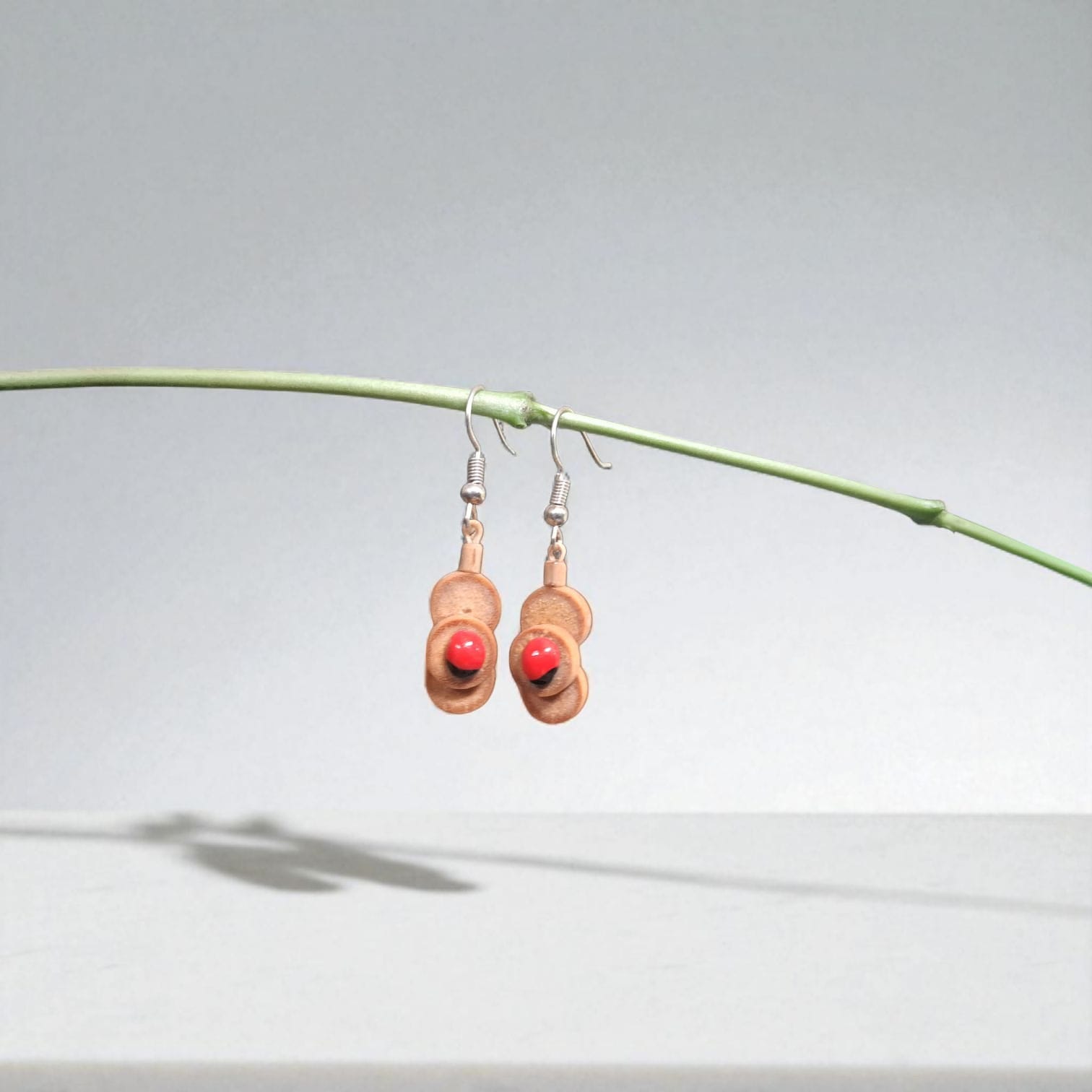 Bamboo Red Seed hoop Earring
